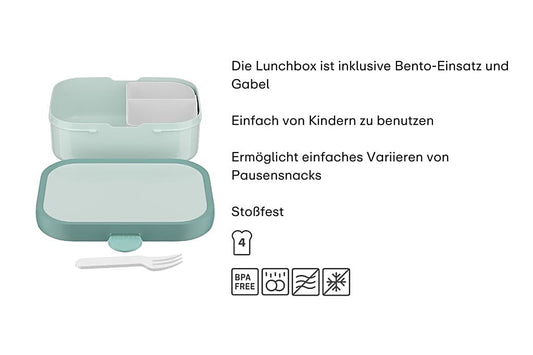 Alles rund um Füttern, Essen lernen, unterwegs und zu Hause. Brotdosen, Snackdosen, Geschirr für Kinder! Die Premium Marke Mepal liefert tolles To Go Material für unterwegs: Lunchpots, Früchtebox sowie die große Auswahl an Wasserflaschen sorgen dafür, dass nichts ausläuft und dein Kind in Kindergarten oder Schule bestens versorgt ist!