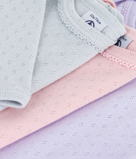 Set langärmeliger Baby-Bodys aus Baumwolle mit Lochstickerei