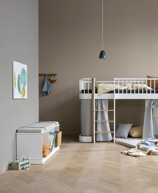 Beistellbett inkl. Umbauset zur Bank, 42x82, weiß/Eiche