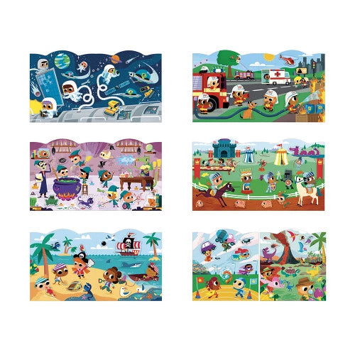 Begib dich mit diesen 70 Stickern auf eine Reise voller Abenteurer und ihrer Abenteuer! Dieses Sticker- und Szenenbuch zum Thema Abenteurer ist für Kinder ab 3 Jahren geeignet. Es passt problemlos in jede Tasche und ist somit der ideale Begleiter für unterwegs. So erweitern die Kleinen ihren Wortschatz und fördern gleichzeitig ihre Feinmotorik. Mit so vielen Stickern ist langanhaltender Spaß garantiert! Entdecke mit diesem charmanten Buch in Form eines Feuerwehrhelms die Welt der Entdecker: 7 Szenen warten darauf, mit den 8 enthaltenen Stickerbögen vervollständigt zu werden. Piraten, Astronauten, Feuerwehrleute, Superhelden … jede Szene lädt dazu ein, spannende Geschichten voller Action und Überraschungen zu erfinden! Die Sticker sind perfekt für kleine Hände: einfache Formen ohne Rand für einfaches Greifen. Ein weiterer Vorteil: Sie sind wiederverwendbar, sodass der Spaß immer wieder neu beginnt! Die Sticker sind clevererweise in einer dezenten Farbe markiert, damit Kinder sie leichter an die richtige Stelle kleben können. Dieses Aktivitätsbuch ist ideal, um Kinder auf Reisen zu beschäftigen oder Wartezeiten zu verkürzen. Durch das Aufkleben der Sticker entwickeln Kinder ihre Feinmotorik und ihre Kreativität. Die leuchtenden Farben, die Vielfalt der Figuren und Umgebungen sowie die lustigen Illustrationen wecken ihre Neugier – vom Weltraum bis zu Pirateninseln!