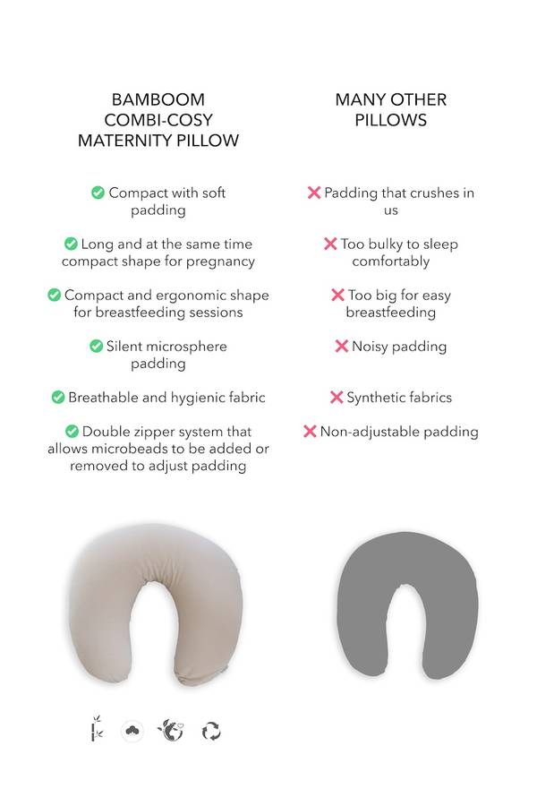 Während der Schwangerschaft sorgt sie dank ihres einzigartigen Designs, der weichen Polsterung und der kompakten, ergonomischen Form für einen komfortablen und erholsamen Schlaf der werdenden Mutter.