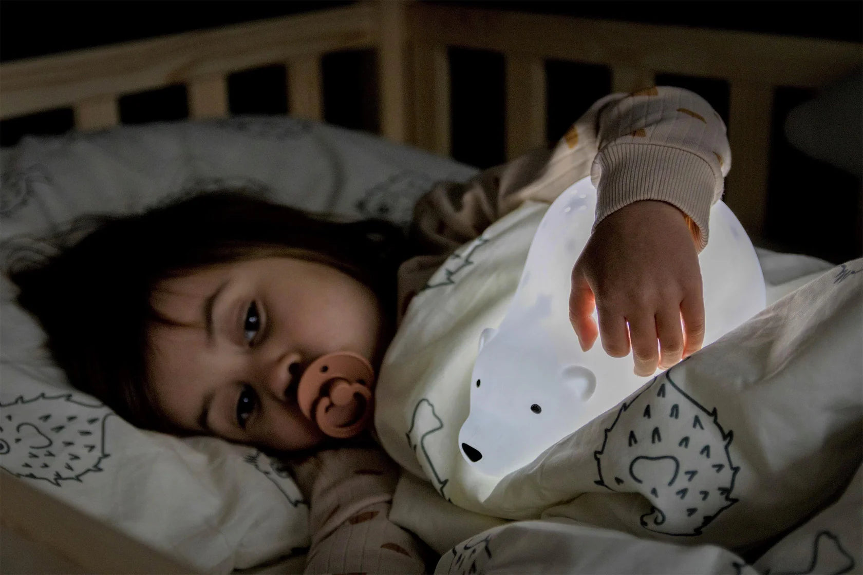 Der Projektor Björn verwandelt Ihr Kinderzimmer in eine magische Welt. Ihr Kleines schläft friedlich ein, während es Björn ansieht und die niedlichen Punkte an die Zimmerdecke projiziert. Der Projektor ist gleichzeitig ein Nachtlicht mit Sternen. Er bietet sechs verschiedene Lichtoptionen: Weiß, Blau, Gelb, Mehrfarbig, Farbverlauf und Farbverlauf. Sie können außerdem zwischen drei verschiedenen Helligkeitsstufen wählen. Der Projektor ist wiederaufladbar und verfügt über eine 30-Minuten-Timerfunktion.