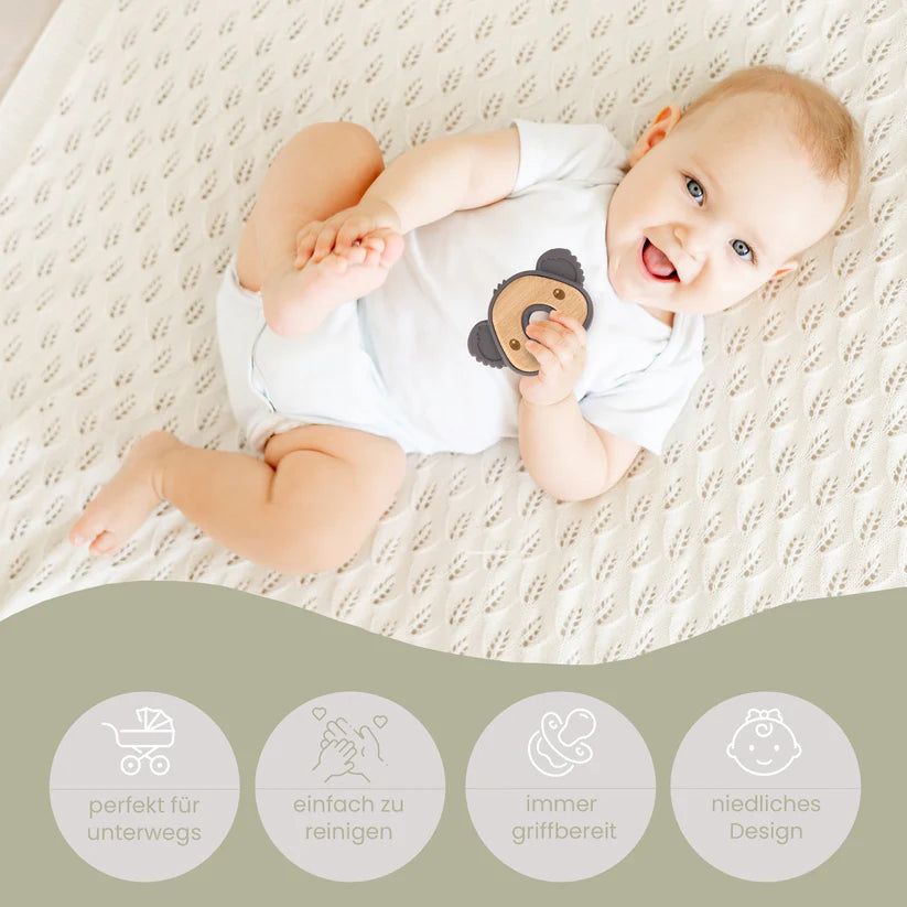 ZAUBERHAFTES DESIGN FÜR BABYS - Dieser niedliche Holz Beißring kombiniert weiches Silikon und natürliches Holz in einem entzückenden Koala-Design, um Babys Sinne anzusprechen und beim Zahnen zu beruhigen.