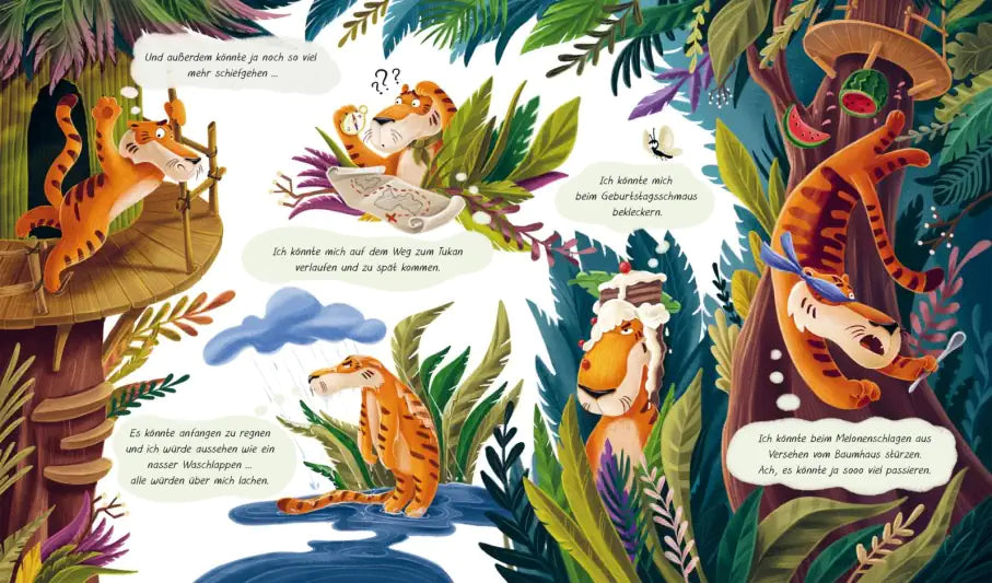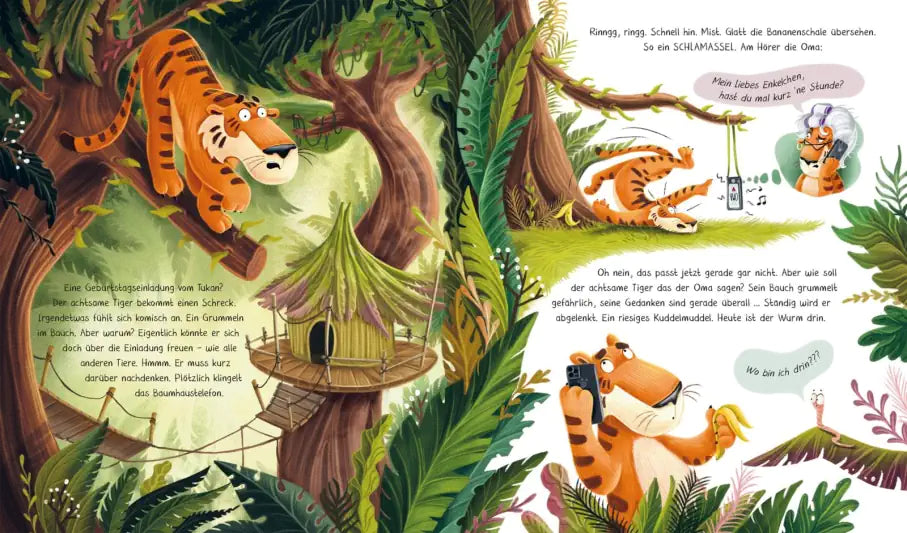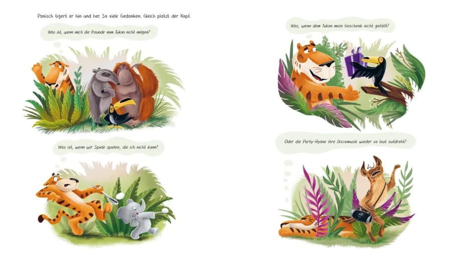 Im Urwald ist was los – der Tukan feiert Geburtstag, und alle Freunde sind eingeladen! Auch der achtsame Tiger ist dabei. Doch statt sich einfach zu freuen, wirbeln plötzlich ganz viele Gefühle durch ihn hindurch: Aufregung, Unsicherheit – und irgendwann weiß er selbst nicht mehr, was da gerade passiert.
