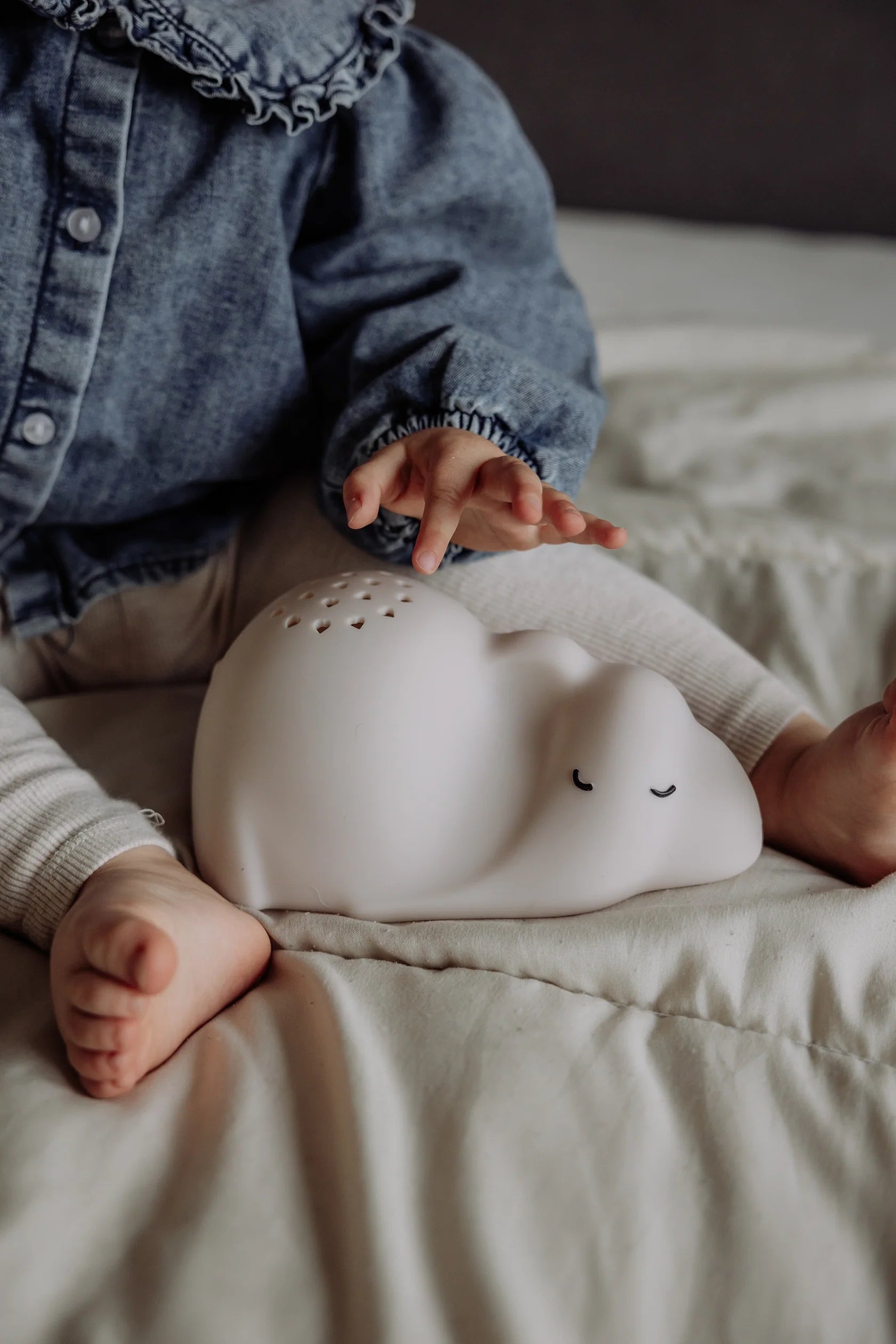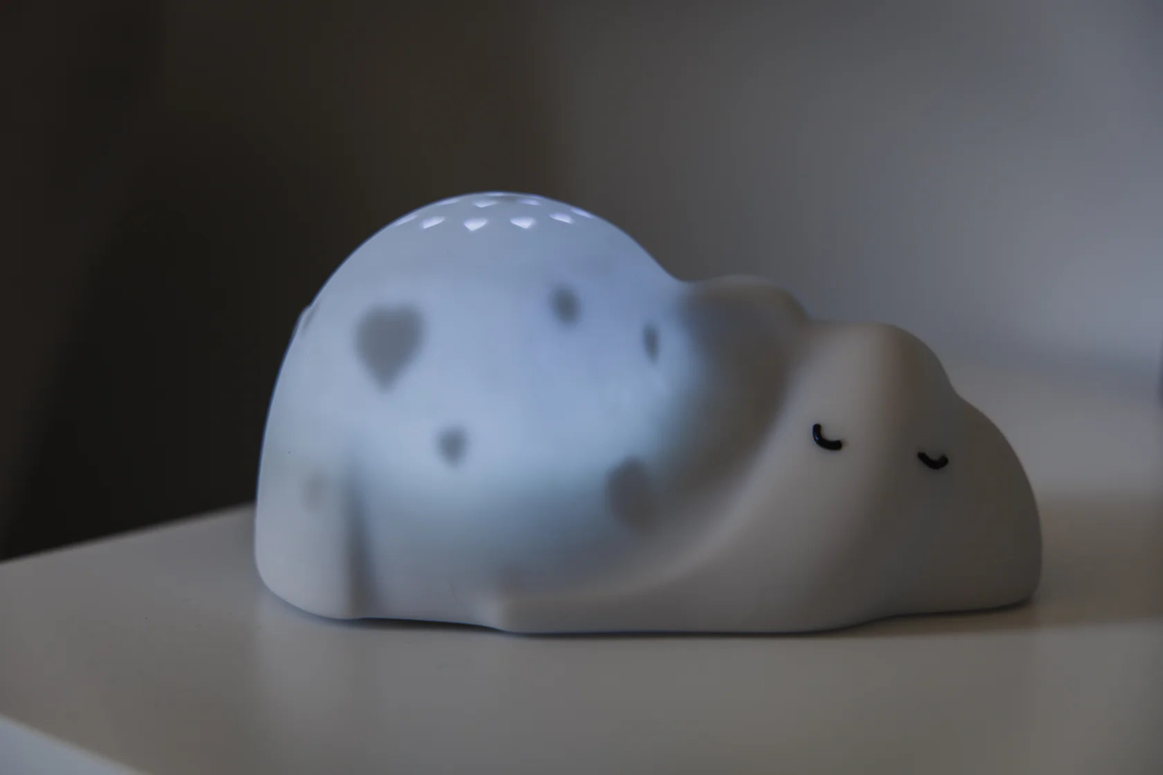 Projektor George verwandelt Ihr Kinderzimmer in eine magische Welt. Ihr Kleines wird friedlich einschlafen, während es George und die Projektion süßer Herzen an die Zimmerdecke ansieht. Der Projektor ist gleichzeitig ein Nachtlicht mit Sternen. Er bietet sechs verschiedene Lichtoptionen: Weiß, Blau, Gelb, Mehrfarbig, Farbverlauf und Farbverlauf. Sie können außerdem zwischen drei verschiedenen Helligkeitsstufen wählen. Der Projektor ist wiederaufladbar und verfügt über eine 30-Minuten-Timerfunktion.