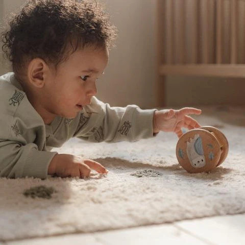 Diese Geschenkbox besteht aus dem niedlichsten Holzspielzeug aus der bezaubernden Forest Friends-Kollektion. Drei lustige Holzartikel, die für diese kostbaren ersten Momente des Spielens und Entwickelns entworfen wurden. Eine Rasselrolle, die dazu ermutigt, zu greifen und hin und her zu schütteln, damit man das Glöckchen klingeln hört. Ein wunderschöner Stapelturm, um Blöcke zu stapeln, bis ein großer Pilz mit einem niedlichen Käfer oben drauf entsteht. Und ein rollender Käfer, mit einem Pilz, einer Eichel, einem Blatt auf seinem Rücken, die sich entlang der Spirale bewegen können. Drei großartige Geschenke, zusammen verpackt in einer schönen Geschenkbox.