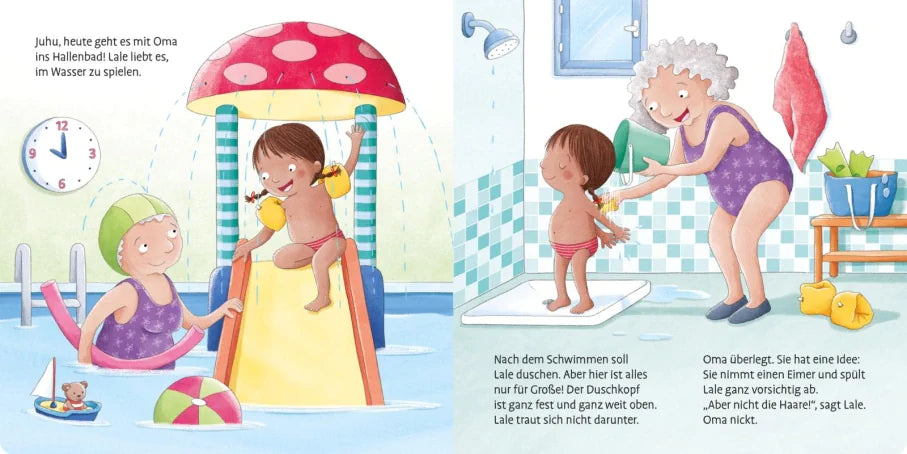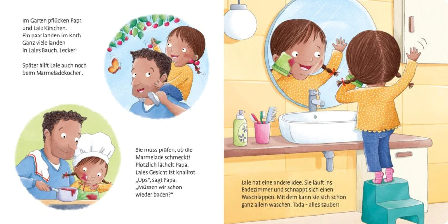 Dieses Buch zeigt einfühlsam und alltagsnah, wie Kinder in ihrem eigenen Tempo neue Dinge lernen. Lale hat vor Wasser keine Angst – sie wäscht sich selbstständig die Hände, reinigt ihr Gesicht mit einem Waschlappen und liebt das Planschen. Nur das Haarewaschen fällt ihr noch schwer. Doch mit Geduld und den richtigen Tricks fürs Haarewaschen ohne Tränen traut sie sich schließlich auch das!