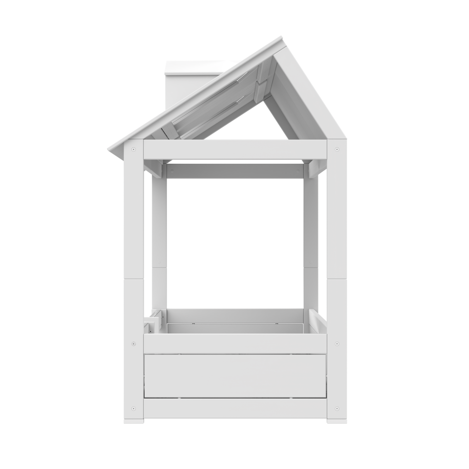 Das Hausbett Beach House ist ein wunderschönes Themenbett im Strandhaus Stil. Die ikonischen Verandafronten laden zum Verweilen, Spielen und Schlafen ein. Die Dachelemente mit Gaube sind ein tolles Highlight zum Herausschauen und Spielen. Das Beach House ist ein beliebtes Bett was ultimativ zum Fokuspunkt im Kinderzimmer wird.