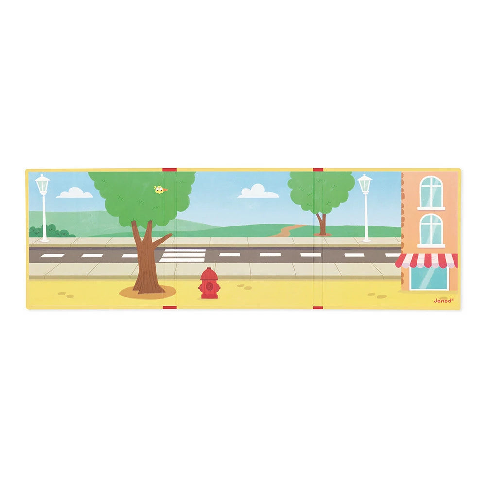 Eine kleine Katze, die gerettet werden muss, ein Feuer, das gelöscht werden muss, das Wehwehchen eines Kindes ... Zum Glück ist die Feuerwehr da, um die Situation zu retten! Dieses Magnetspiel wird Ihre Kinder ab 3 Jahren begeistern. Sie können sich vorstellen, wie sie als Feuerwehrmann oder -frau zu Hilfe eilen. Das Magnetspiel besteht aus einer illustrierten Tafel mit den Farben der Feuerwehr und 30 Magneten, mit denen die Szene ergänzt werden kann. Durch das Platzieren der Magnete und mithilfe seiner Fantasie erweckt das Kind die Szene nach und nach zum Leben. Die kleine Katze fängt an zu miauen und das kleine Mädchen trocknet schließlich ihre Tränen, weil die Feuerwehr zu Hilfe kommt! Diese große Dekoration ist faltbar, sodass sie leicht transportiert werden kann. Einmal in den Rucksack oder ins Auto gesteckt, stehen der Fantasie Ihrer kleinen Feuerwehrleute keine Hindernisse mehr im Weg. Sobald die Magnete auf der Unterlage platziert und die Geschichte fertig ist, wird Ihr Kind mit Freude die Kulisse vertikal aufstellen, um Ihnen seine Geschichte zu erzählen. Das Magnetspiel zum Thema Feuerwehr ist Teil der großen Magneti'stories Kollektion, die viel Raum zur Entfaltung der Fantasie bietet Das magnetische Spiel besteht aus FSC™ -zertifizierter Pappe sowie aus geprüften Materialien.
