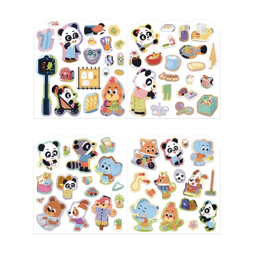 Begleite diesen niedlichen Panda durch seinen Tag mit diesen 70 Stickern! Dieses Sticker- und Bastelbuch ist speziell für Kinder ab 3 Jahren entwickelt. Es ist leicht mitzunehmen und begleitet die Kleinen überallhin. Es bietet eine unterhaltsame Beschäftigung, die ihren Wortschatz erweitert und gleichzeitig ihre Feinmotorik fördert. Mit so vielen Stickern ist langanhaltender Spaß garantiert! Kleine Sticker-Fans werden begeistert sein: Öffne dieses süße, pandaförmige Büchlein und entdecke die verschiedenen Aktivitäten des Panda-Alltags. Es enthält 7 Szenen zum Dekorieren mit den 8 Seiten voller Sticker. Vom Aufwachen über die Schule und das Spielen bis hin zum Nachhausekommen – jede Szene erzählt eine Geschichte. Eine spielerische Art, deinem Kind die wichtigsten Tagesabschnitte näherzubringen! Die Sticker sind ideal für kleine Hände: einfache Formen ohne Rand für einfaches Greifen. Ein weiterer Vorteil: Sie sind wiederverwendbar, sodass der Spaß immer wieder neu beginnt! Die Sticker sind clever designt: Die richtige Position ist in einer dezenten Farbe markiert, damit Kinder sie leichter an die richtige Stelle kleben können. Dieses Aktivitätsbuch ist perfekt, um Kinder auf Reisen oder beim Warten zu beschäftigen. Beim Spielen mit den Aufklebern entwickeln Kinder ihre Feinmotorik und ihre Kreativität wird angeregt. Die leuchtenden Farben und die Vielfalt der Figuren wecken ihre Neugier!