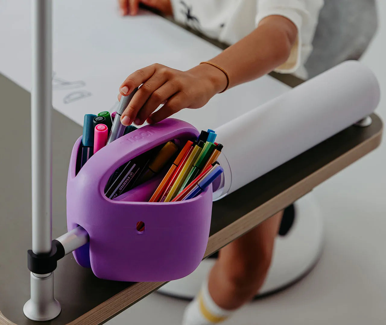 Die popsnap Schreibtischlampe bietet das ideale Licht für den poptop Kinderschreibtisch. Ihr geschwungener Bogen erstreckt sich über die gesamte Tischplatte, um ein nahezu schattenfreies Arbeiten zu gewährleisten.