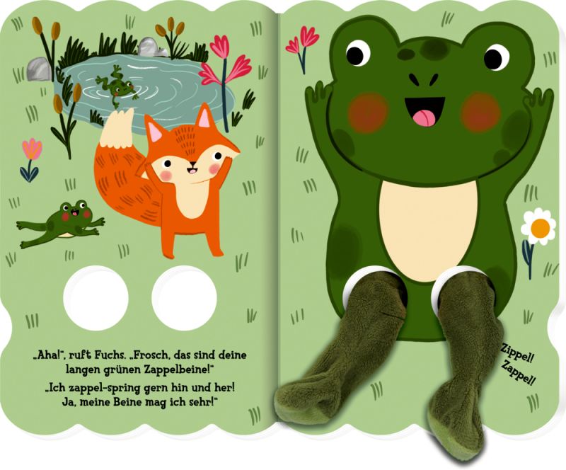 In diesem liebevoll gestalteten Pappbilderbuch für Kinder ab 12 Monaten geht der kleine Fuchs einem rätselhaften Wackeln auf den Grund: Wem gehören bloß die grünen Zappelbeine? Seite für Seite dürfen die Kleinen mitraten, fühlen und staunen. Die lustigen Plüschbeine laden zum Anfassen ein, während fröhliche Reime und moderne Illustrationen für gemeinsame Lesemomente sorgen. Ein interaktives Fühlbuch, das Neugier weckt und spielerisch die Sinne schult.