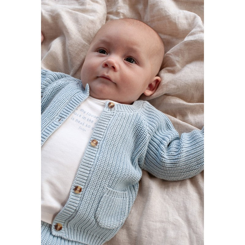 Klassische Baby Strickjacke aus 60% Viscose, 40% Baumwolle mit Knöpfen. Unisex Passende Hose erhältlich |