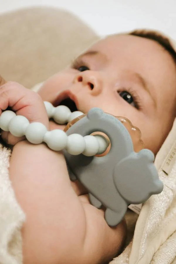 Der neue Beißring von Bamboom in Form eines Bären und eines Fisches ist die perfekte Lösung, um Beschwerden beim Zahnen zu lindern. Er vereint attraktives Design, Funktionalität und sichere Materialien. Dank der Möglichkeit, ihn in der Gefriertruhe zu kühlen, bietet er eine zusätzliche Erleichterung für das wunde Zahnfleisch deines Babys.